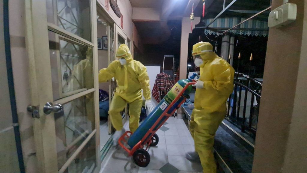 เจ้าหน้าที่จึงนำถังออกซิเจนไปประกอบติดตั้งพร้อมแนะนำวิธีการใช้ให้แก่สมาชิกในครอบครัว โดยหลังจากได้รับออกซิเจนเพื่อพยุงระบบการหายใจอาการของทั้งคู่ดีขึ้น ค่าออกซิเจนในเลือดกลับขึ้นมาที่ร้อยละ 97
