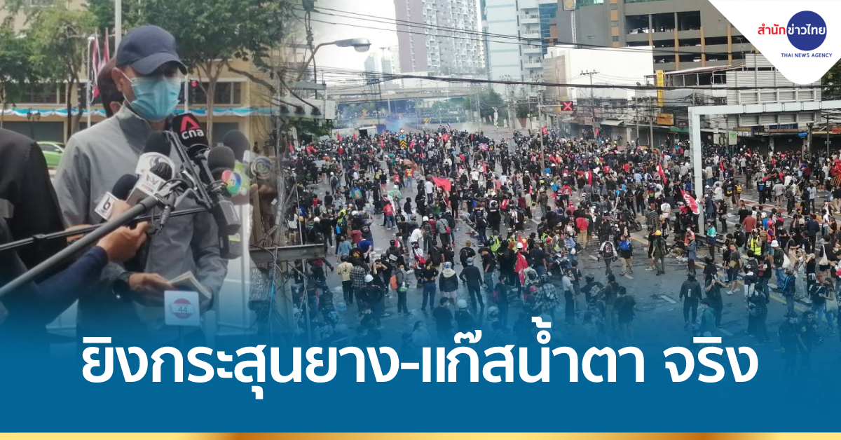 กรุงเทพฯ 7 ส.ค.-รองโฆษก ตร. ยอมรับตำรวจ คฝ. ใช้กระสุนยาง-แก๊สน้ำตา ยิงใส่ผู้ชุมนุมบริเวณแยกสามเหลี่ยมดินแดง เนื่องจากผู้ชุมนุมไม่ปฏิบัติตามคำแจ้งเตือนของเจ้าหน้าที่