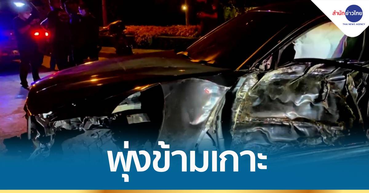 กทม. 9 ส.ค. – หนุ่มวัย 26 ปี ซิ่งเก๋งหรูป้ายแดง เสียหลักพุ่งข้ามเกาะกลางถนนชนต้นไม้ รถพังยับ คนขับยังไม่ยอมให้การใดๆ