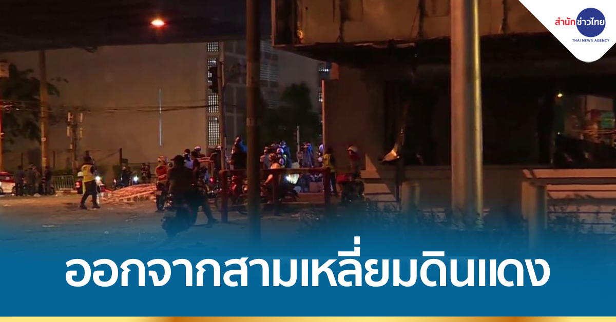 กรุงเทพฯ 11 ส.ค.-ผู้ชุมนุมทยอยออกจากพื้นที่สามเหลี่ยมดินแดง พร้อมประกาศรวมตัวต่อที่อนุสาวรีย์ชัยสมรภูมิ ขณะที่ตำรวจยุติการยิงแก๊สน้ำตาและกระสุนยางในบริเวณดังกล่าวแล้ว.-สำนักข่าวไทย
