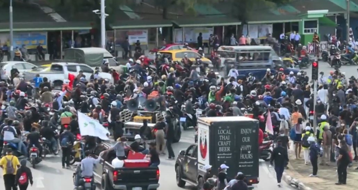 กลุ่มทะลุฟ้า ประกาศรวมพลมวลชนแนวร่วมที่อนุสาวรีย์ชัยสมรภูมิ เพื่อเดินไปขับไล่ พล.อ.ประยุทธ์ จันทร์โอชา นายกรัฐมนตรี ออกจากตำแหน่ง ในวันนี้ (13 ส.ค.) เป็นครั้งที่ 2 โหมโรงด้วยการนำมังคุดและลำไย เทบนถนนกลางอนุสาวรีย์ชัยสมรภูมิ แล้วทำการเผา เพื่อสะท้อนให้เห็นถึงการบริหารงานผิดพลาด ทำให้ผลผลิตทางการเกษตรตกต่ำ จากนั้นเคลื่อนขบวนมุ่งหน้าแยกดินแดง ประกาศไปบ้านพักนายกรัฐมนตรี ขณะที่กลุ่มวัยรุ่นที่เป็นแนวร่วมจำนวนหนึ่งได้ขี่รถจักรยานยนต์ บีบแตร และเบิ้ลเครื่องยนต์เสียงดัง เข้าไปใน ถ.วิภาวดีรังสิต บริเวณหน้าแนวกำแพงตู้คอนเทนเนอร์ ตะโกนไล่นายกรัฐมนตรี โดยบางคนในกลุ่มได้ปาระเบิดปิงปองใส่แนวกำแพงตู้คอนเทนเนอร์ ทำให้เจ้าหน้าที่ตำรวจต้องประกาศเตือนให้กลุ่มวัยรุ่นยุติการกระทำดังกล่าว