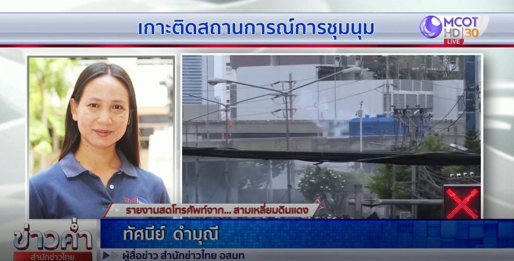 เวลาประมาณ 18.50 น. เจ้าหน้าที่ควบคุมฝูงชนระดมยิงแก๊สน้ำตาและฉีดน้ำใส่ผู้ชุมนุมอย่างหนัก ทำให้นายณัฐวุฒิพาผู้ชุมนุมออกจากพื้นที่ได้สำเร็จ ผู้ชุมนุมส่วนใหญ่ออกมากับนายณัฐวุฒิ แต่ยังมีผู้ชุมนุมกลุ่มหนึ่งยังอยู่ในพื้นที่จุดปะทะ .-สำนักข่าวไทย