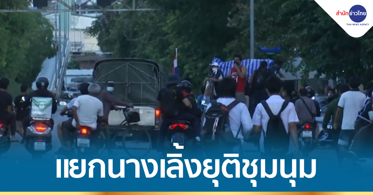 18.15 น. ผู้ชุมนุมออกจาพื้นที่เกือบทั้งหมด นัดเจอกันที่แยกดินแดง เจ้าหน้าที่ตำรวจประกาศขอคืนพื้นที่.-สำนักข่าวไทย