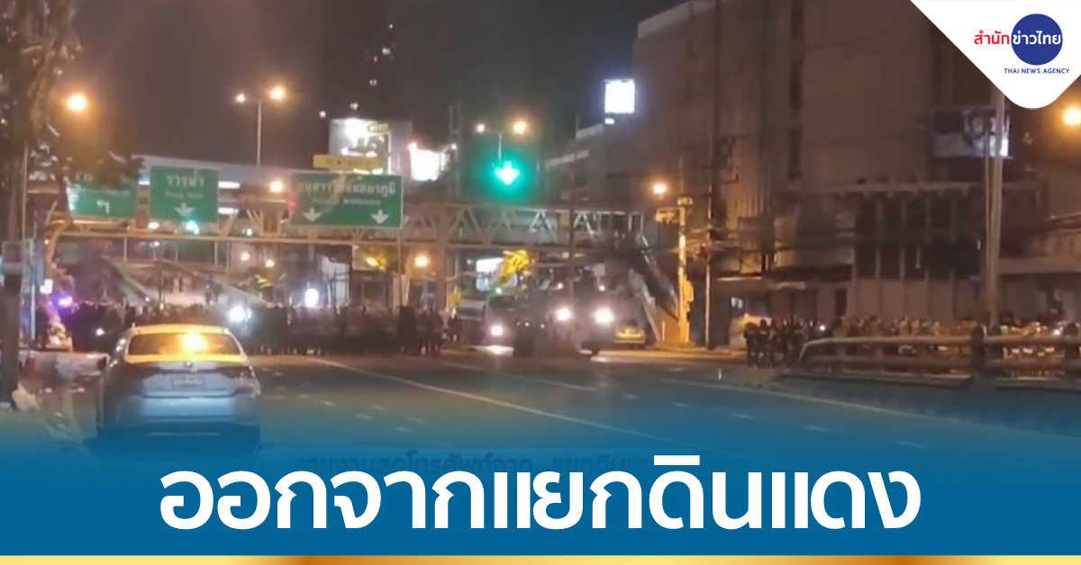 ขณะเดียวกันเจ้าหน้าที่ ผบ.เหตุการณ์ ได้ใช้เครื่องขยายเสียงประกาศให้ผู้ชุมนุมที่ยังคงปักหลักอยู่บริเวณด้านหน้าแฟลตดินแดงออกจากพื้นที่ โดยกลุ่มผู้ชุมนุมยังมีการยิงประทัดยักษ์ ระเบิดเพลิง และพลุดาวกระจายยั่วยุเจ้าหน้าที่ตำรวจตลอดเวลา.-สำนักข่าวไทย