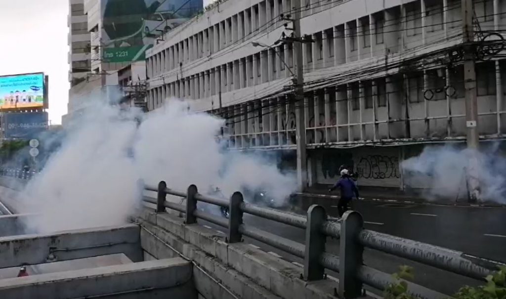 บรรยากาศการชุมนุมที่แยกดินแดง เริ่มปะทะกันตั้งแต่เวลา 16.49 น. เมื่อวัยรุ่นจำนวนหนึ่งขับรถจักรยานยนต์เข้ามาปาระเบิดปิงปองหน้าตู้คอนเทนเนอร์บนถนนวิภาวดีรังสิตขาออก ยิงหนังสติ๊ก และจุดไฟเผาแท่งแบริเออร์ยางสีส้ม ตำรวจควบคุมฝูงชนด้านหลังแนวตู้คอนเทนเนอร์บนถนนวิภาวดีรังสิตขาออก จึงยิงแก๊สน้ำตาออกมา พร้อมเดินขึ้นทางด่วนดินแดง ยิงแก๊สน้ำตาจากจุดสูง เพื่อไล่เด็กๆ ออกจากแยกดินแดง