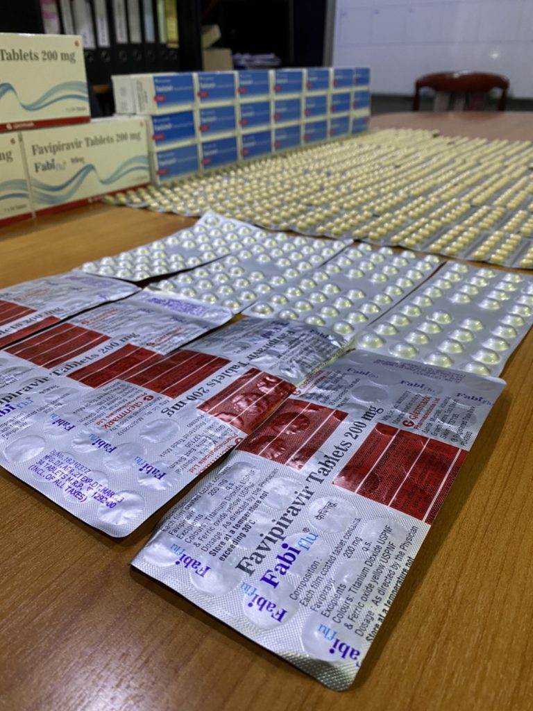 พ.ต.อ.ภิญโญ ป้อมสถิตย์ ผกก.กองกำกับการสวัสดิภาพเด็กและสตรี บช.น. ร่วมกับเจ้าหน้าที่ อย. จับกุม นายกรกช (สงวนนามสกุล) อายุ 33 ปี พร้อมของกลาง ยาฟาวิพิราเวียร์ ไม่ระบุทะเบียน จำนวน 43 กล่อง รวม 2,026 เม็ด มูลค่ากว่า 5 แสนบาท โดยจับกุมได้ภายในโกดังแห่งหนึ่ง บริเวณซอยประดิพัทธ์ 10 ถนนประดิพัทธ์ แขวงสามเสนใน เขตพญาไท กรุงเทพฯ