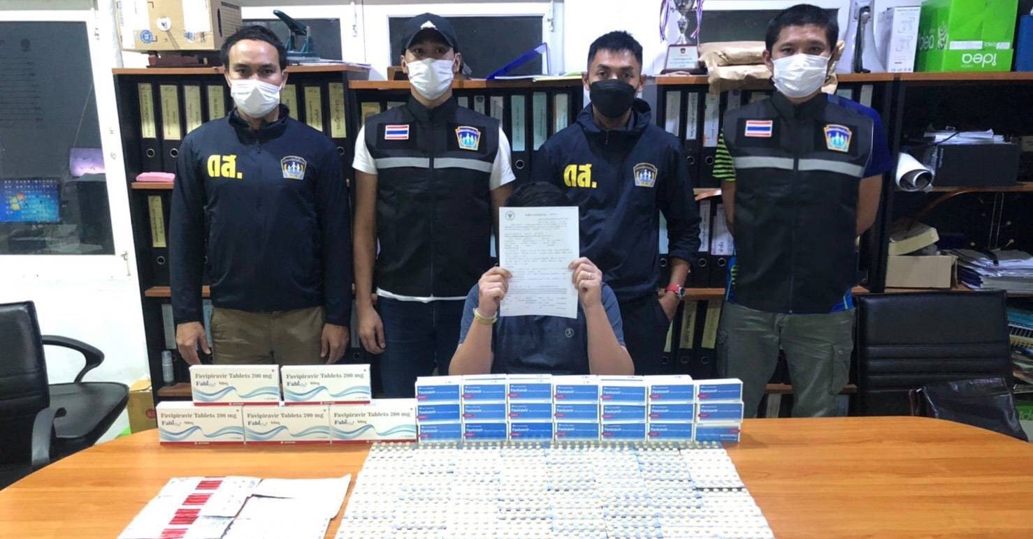 พ.ต.อ.ภิญโญ ป้อมสถิตย์ ผกก.กองกำกับการสวัสดิภาพเด็กและสตรี บช.น. ร่วมกับเจ้าหน้าที่ อย. จับกุม นายกรกช อายุ 33 ปี พร้อมของกลาง ยาฟาวิพิราเวียร์ ไม่ระบุทะเบียน จำนวน 43 กล่อง รวม 2,026 เม็ด มูลค่ากว่า 5 แสนบาท โดยจับกุมได้ภายในโกดังแห่งหนึ่ง บริเวณซอยประดิพัทธ์ 10 ถนนประดิพัทธ์ แขวงสามเสนใน เขตพญาไท
