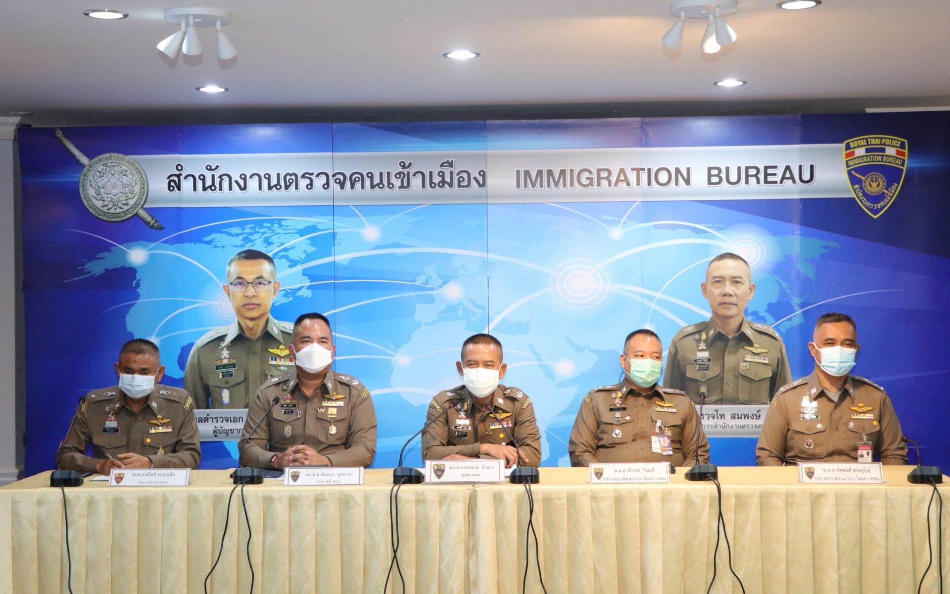 พล.ต.ท.สมพงษ์ ชิงดวง ผู้บัญชาการสำนักงานตรวจคนเข้าเมือง ร่วมกับเจ้าหน้าที่ ศปชก.สตม. ร่วมแถลงจับกุมนายเลี่ยว อายุ 27 ปี สัญชาติจีน ในข้อหาประกอบธุรกิจทวงถามหนี้โดยไม่ได้รับอนุญาต, มีไว้เพื่อนำออกใช้ซึ่งบัตรอิเล็กทรอนิกส์ของผู้อื่นโดยมิชอบ ในประการที่น่าจะก่อให้เกิดความเสียหายแก่ผู้อื่นหรือประชาชน และเป็นบุคคลต่างด้าวทำงานโดยไม่ได้รับอนุญาต