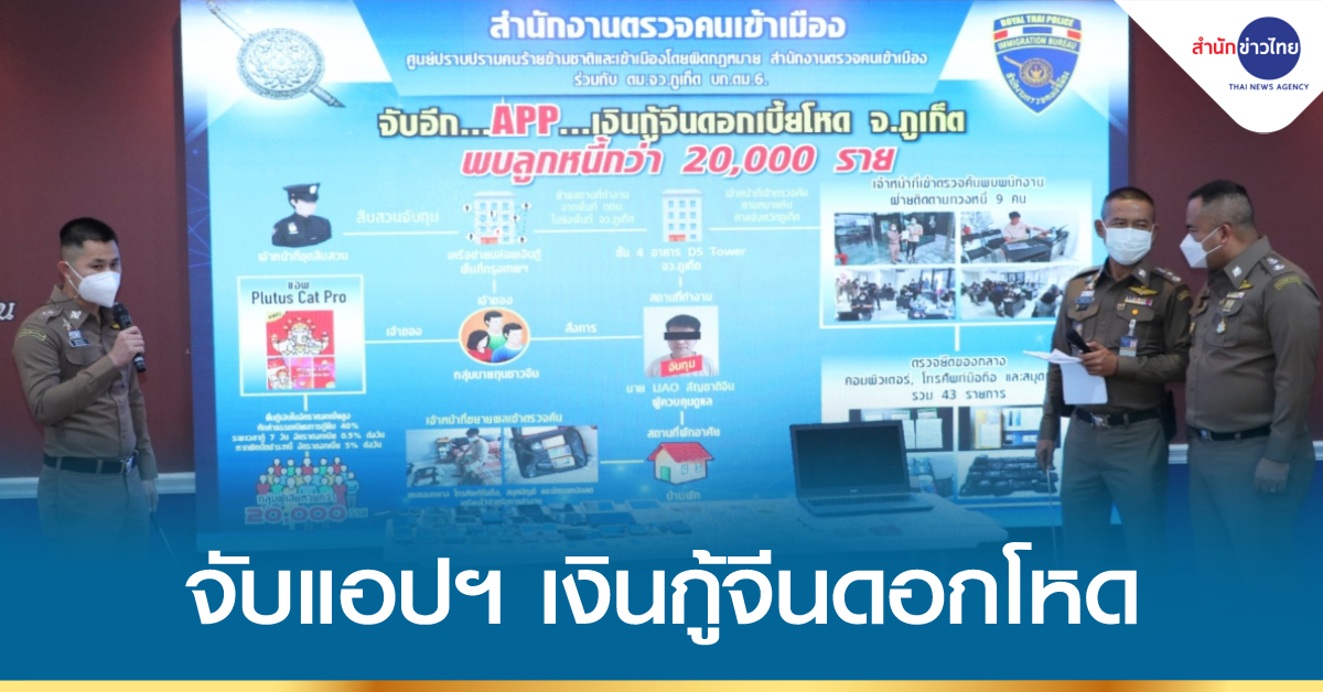 สืบเนื่องจากการขยายผลจับกุมเครือข่ายปล่อยเงินกู้พื้นที่กรุงเทพฯ ตำรวจ บก.สส.สตม. และ ศปชก.สตม. ทำการสืบสวนขยายผลพบว่า เครือข่ายดังกล่าวย้ายไปอยู่ในพื้นที่ จ.ภูเก็ต และยังมีพฤติการณ์โทรทวงเงินพร้อมดอกเบี้ยโหดกับลูกหนี้ที่กู้เงินผ่านแอปพลิเคชัน ชื่อ “พลูตัส แค็ท โปร” (Plutus cat pro) ซึ่งแอปฯ ดังกล่าวลักลอบเปิดสำนักงานอยู่ในพื้นที่ ต.เกาะแก้ว อ.เมือง จ.ภูเก็ต ชุดสืบสวนจึงรวบรวมพยานหลักฐานขออนุมัติศาลจังหวัดภูเก็ตออกหมายค้น และเข้าค้นยังอาคารเป้าหมาย พบนายเลี่ยว อายุ 27 ปี สัญชาติจีน โดยรับว่าเป็นผู้ควบคุม ดูแล จัดการ และจ่ายเงินเดือนให้กับพนักงาน ระหว่างเข้าตรวจค้น พบพนักงาน 19 คน และทำการตรวจยึดทรัพย์สินและเอกสารที่น่าเชื่อว่ามีไว้ใช้หรือเกี่ยวข้องกับการกระทำความผิด เช่น สมุดบันทึกรายชื่อลูกหนี้ ซิมการ์ด โทรศัพท์มือถือ และคอมพิวเตอร์โน้ตบุ๊ก รวมจำนวน 43 รายการ จากการตรวจสอบคอมพิวเตอร์โน้ตบุ๊กส่วนตัวของนายหลิว พบรายชื่อลูกหนี้กว่า 20,000 ราย สอบถามพนักงานให้การว่า จะต้องโทรทวงหนี้ให้ได้วันละ 10-15 ราย ซึ่งจะได้ค่าจ้างเดือนละ 10,000-15,000 บาท และค่าคอมมิชชัน 8 บาท ต่อการทวงหนี้ได้ 1 ราย โดยจะให้ลูกหนี้ชำระเงินเข้าบัญชีธนาคารที่นายเลี่ยว จ้างเปิดบัญชีไว้ ชุดสืบสวน ศปชก.สตม. จึงดำเนินการจับกุมนายเลี่ยว ส่งให้พนักงานสอบสวน สภ.เมืองภูเก็ต เพื่อดำเนินคดีตามกฎหมาย.-สำนักข่าวไทย