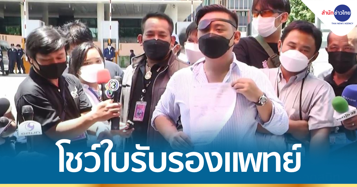 กรุงเทพฯ 24 ส.ค. – “ไฮโซลูกนัท” เดินทางมายื่นใบรับรองแพทย์ยืนยันว่าตาขวาบอดจริง ให้กับผู้ช่วยของ “สิระ” ส.ส.พรรคพลังประชารัฐ พร้อมปฏิเสธกรณี “สิระ” อ้างข้อมูลว่าตาของตนมองเห็นได้ 15%