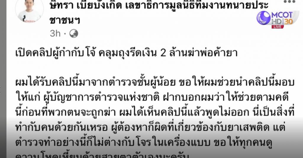 ผบ.ตร. สั่งการให้เร่งตรวจสอบข้อเท็จจริง มีคำสั่งให้ผู้กำกับโจ้ย้ายไปปฏิบัติราชการที่ ศปก.ภ.6