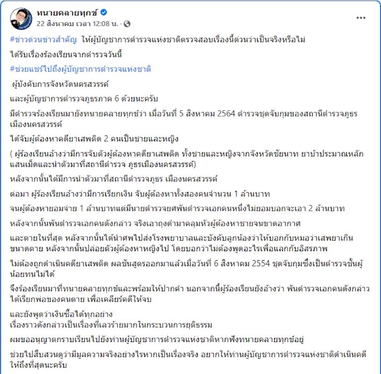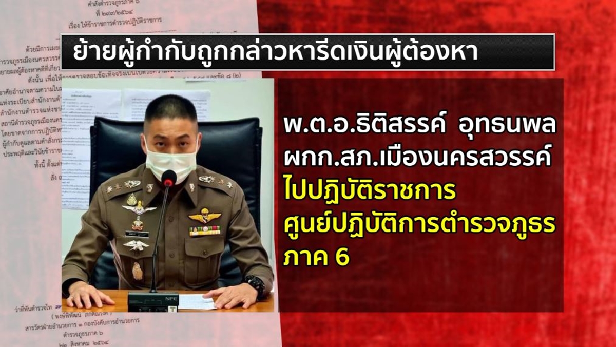 23 ส.ค.64 : พล.ต.ท.อภิชาติ ศิริสิทธิ์ ผบช.ภ.6 สั่งย้ายด่วน พ.ต.อ.ธิติสรรค์ อุทธนผล ผกก.สภ.เมืองนครสวรรค์ ให้ไปช่วยราชการที่ศูนย์ปฏิบัติการตำรวจภูธรภาค 6 พร้อมสั่งตรวจสอบข้อเท็จจริงดังกล่าว