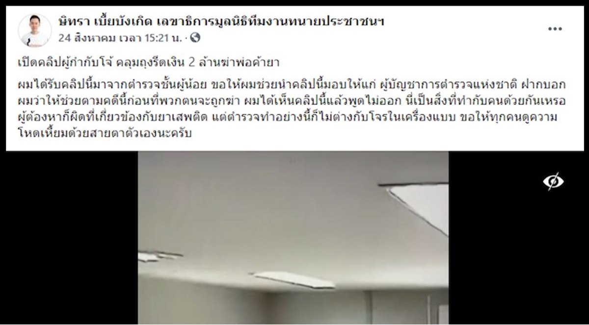 24 ส.ค.64 : ทนายษิทรา เบี้ยบังเกิด โพสต์คลิปวิดีโอผ่านเฟซบุ๊ก เหตุการณ์ที่เกิดขึ้นในคดีนี้ ทำให้เกิดกระแสจนสร้างความสั่นสะเทือนให้กับวงการตำรวจอย่างมาก กระทั่งมีคำสั่งสำนักงานตำรวจแห่งชาติ ให้ พ.ต.อ.ธิติสรรค์ อุทธนผล ออกจากราชการไว้ก่อน จากคดีทำร้ายร่างกายโดยการทรมาน นายจิระพงศ์ ธนะพัฒน์ ผู้ต้องหาคดียาเสพติด จนเสียชีวิต และมีการสอบปากคำญาติผู้เสียชีวิตเพิ่มเติม
