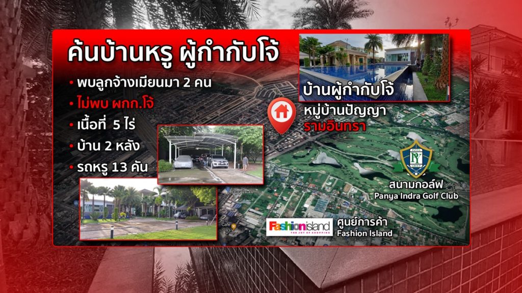 ด้านตำรวจเข้าค้นบ้าน “ผกก.โจ้” ในพื้นที่เขตคลองสามวา กทม. แต่ไม่พบตัว “ผกก.โจ้” พบเพียงลูกจ้างชาวเมียนมา นอกจากนี้ พบรถยนต์ จำนวน 13 คัน มูลค่านับร้อยล้านบาท โดยระหว่างนี้เจ้าหน้าที่ได้เข้าจับกุมผู้ต้องหา 5 คน ยังคงเหลือหลบหนีอีก 2 คน ซึ่ง “ผกก.โจ้” เป็นหนึ่งในผู้ต้องหาที่ยังไม่สามารถติดตามตัวมาได้ โดยมีกระแสข่าวลือว่า อาจหลบหนีไปอยู่ในประเทศเพื่อนบ้าน