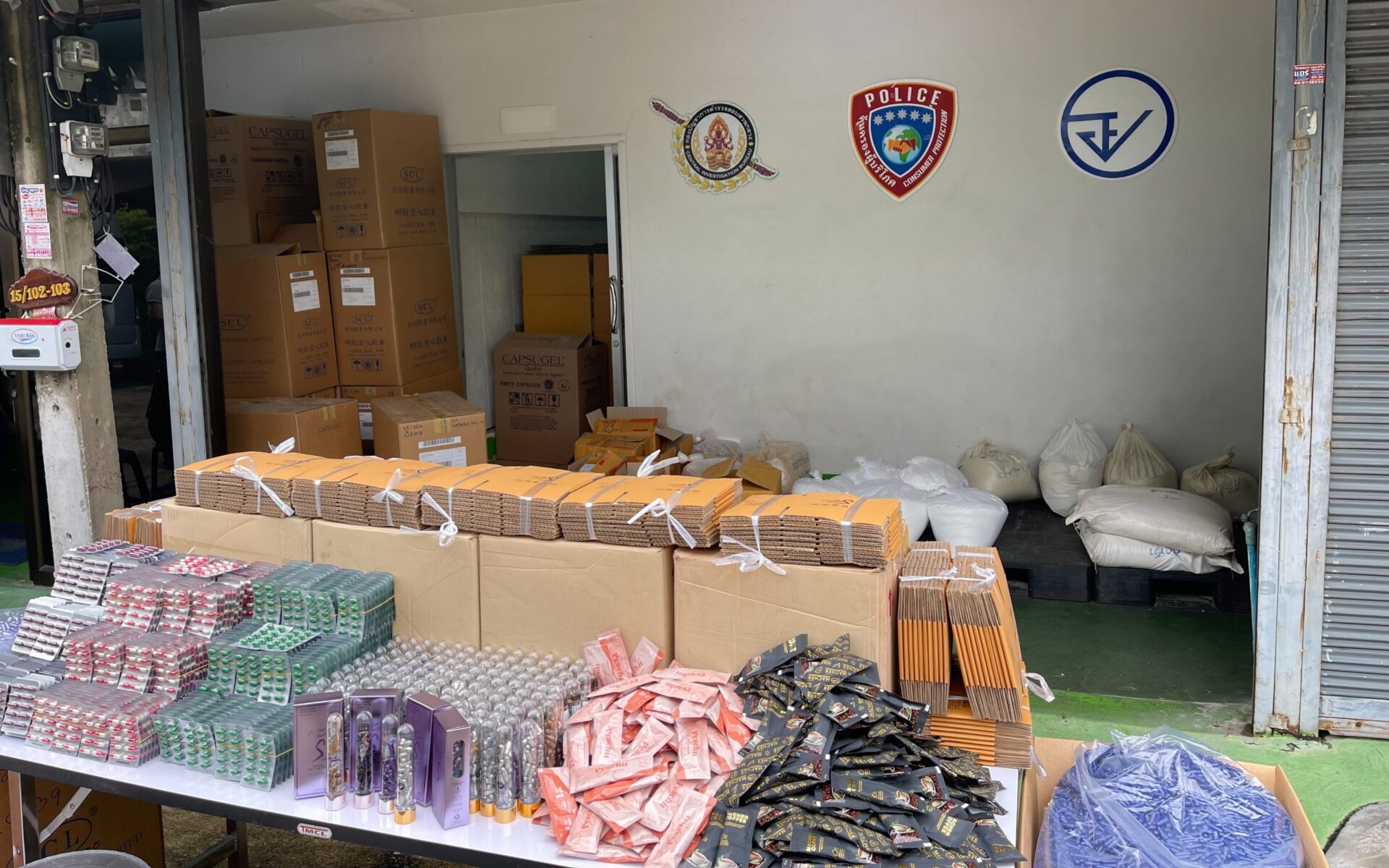โดยวันที่ 9 สิงหาคม ตำรวจได้นำหมายค้นของศาลจังหวัดสุพรรณบุรี เข้าตรวจค้นสถานที่จัดเก็บและจำหน่ายสินค้า ตั้งอยู่ที่ ม. 13 ต. ทุ่งคอก อ. สองพี่น้อง จ. สุพรรณบุรี โดยเจ้าหน้าที่ตำรวจได้ตรวจยึดแคปซูลเปล่าน้ำหนักรวม 110 กก., ผงสำหรับใส่ในแคปซูลน้ำหนักรวม 45 กก. นำส่งพนักงานสอบสวน กก.4 บก.ปคบ. เพื่อดำเนินการตามกฎหมาย