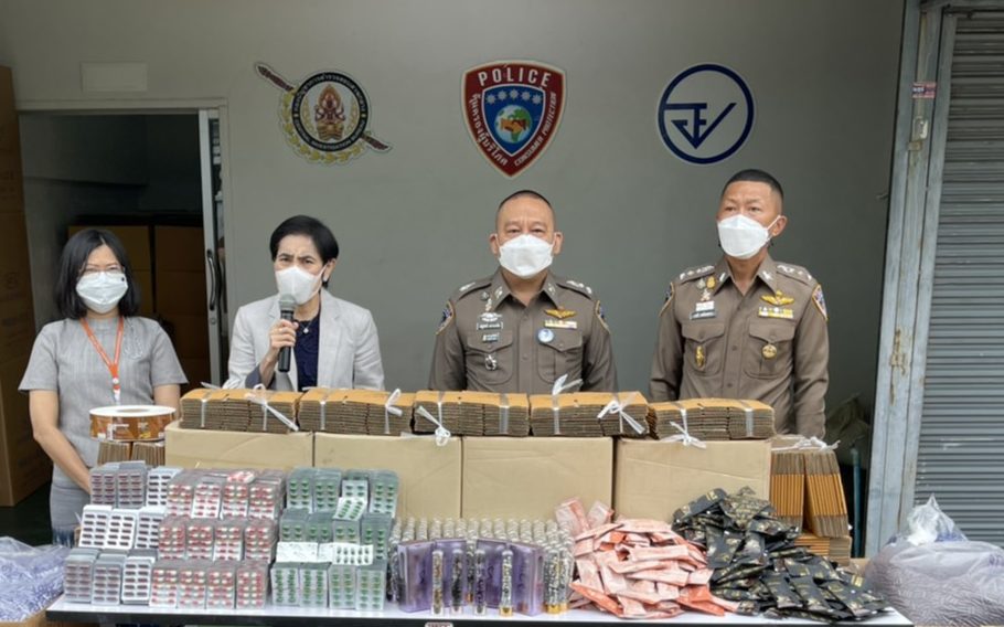 ตำรวจกองบังคับการปราบปรามการกระทำผิดเกี่ยวกับการคุ้มครองผู้บริโภค (บก.ปคบ.) ร่วมกับสำนักงานคณะกรรมการอาหารและยา(อย.) ร่วมกันแถลงผลการปฏิบัติการ กรณีจับกุมผู้กระทำความผิดลักลอบผลิต ผลิตภัณฑ์เสริมอาหาร ยี่ห้อ FLASH SLIM ผสมไซบูทรามีนซึ่งเป็นวัตถุออกฤทธิ์ต่อจิตและประสาท ตรวจยึดได้ของกลางเป็นจำนวนมาก