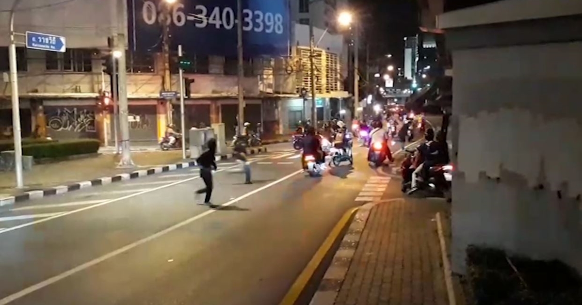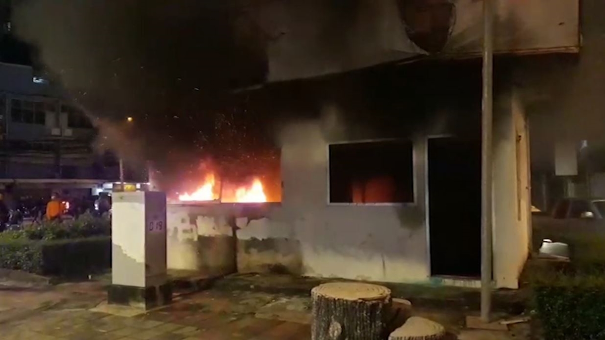 ขณะที่ฝ่ายเจ้าหน้าที่ได้ประกาศเตือน ก่อนที่จะใช้แก๊สน้ำตาและกระสุนยางยิงสกัด กลายเป็นเหตุปะทะ โดยกลุ่มผู้ชุมนุมมีการตอบโต้ด้วยการขว้างปาวัตถุเสียงดังคล้ายระเบิดเข้าใส่เจ้าหน้าที่อย่างต่อเนื่อง และมีการเผาป้อมจราจรแยกดินแดง เจ้าหน้าที่ใช้รถน้ำจีโน่ฉีดสกัดเพลิง จนสามารถควบคุมเพลิงไว้ได้. – สำนักข่าวไทย