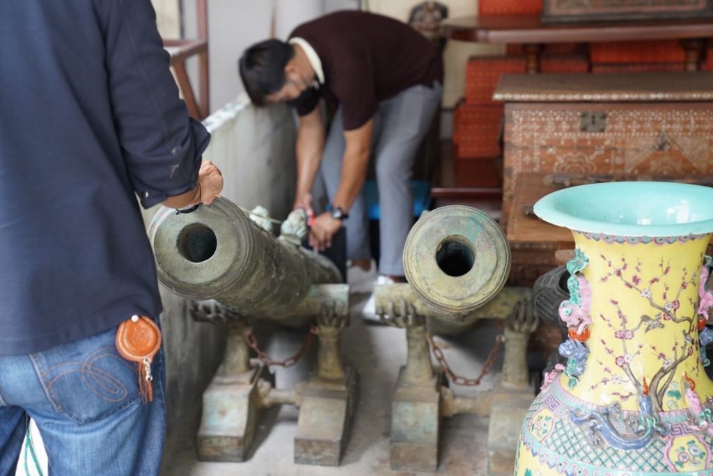 จากการตรวจสอบพบว่ามีนายยืนยง แสดงตัวเป็นเจ้าของสถานที่ทั้งหมด พร้อมกับพาเจ้าหน้าที่ตรวจสอบ ผลการตรวจค้นพบโบราณวัตถุลักษณะคล้ายปืนใหญ่ 7 กระบอก นายยืนยงให้การว่าเป็นผู้ครอบครองทั้งหมด และเปิดขายหน้าร้าน บริเวณถนนบรมราชชนนี แขวงตลิ่งชัน มานานกว่า 8 ปี โบราณวัตถุลักษณะคล้ายปืนใหญ่ทั้งหมดนำเข้ามาจากต่างประเทศ กำหนดราคาตามขนาด กระบอกเล็กขายในราคาประมาณ 50,000 – 100,000 บาท และกระบอกใหญ่ขายในราคา 100,000 – 200,000 บาท นอกจากนี้เจ้าหน้าที่ยังตรวจพบการขายสินค้าประเภทอื่นอีกด้วย