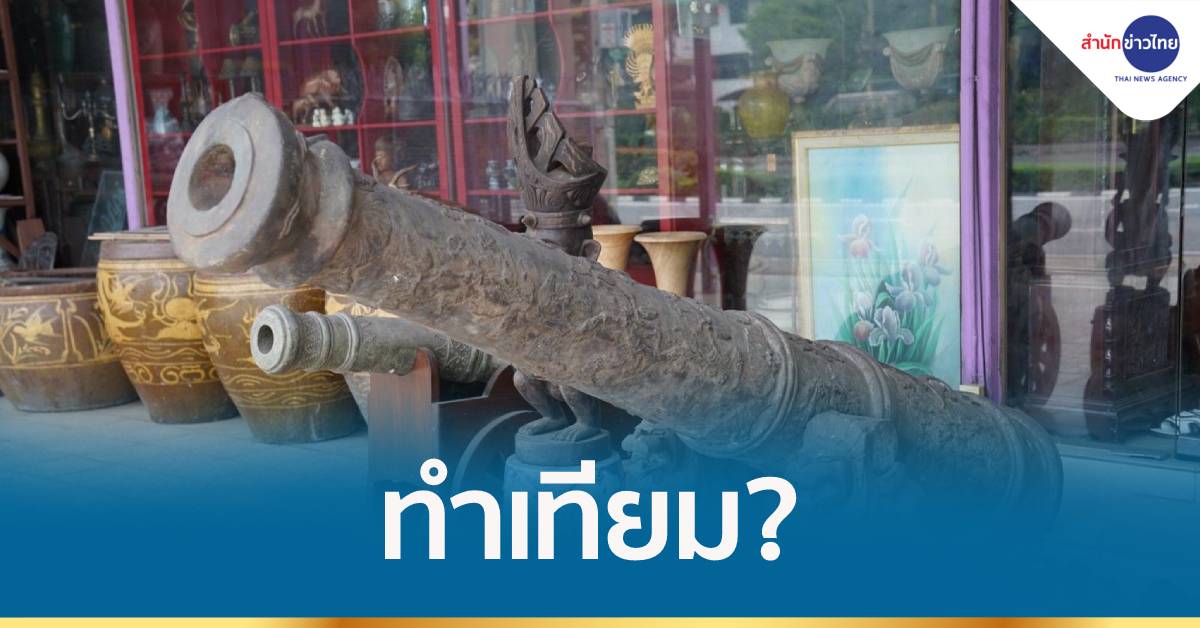 อย่างไรก็ตาม เจ้าหน้าที่กรมศิลปากรตรวจสอบเบื้องต้นพบว่า โบราณวัตถุลักษณะคล้ายปืนใหญ่ทั้งหมดเป็นวัตถุที่ทำเทียมและเลียนแบบขึ้นมา แต่จะนำไปตรวจสอบทางวิทยาศาสตร์เพื่อยืนยันอีกครั้ง หากพบว่าเป็นสิ่งผิดกฎหมายจะดำเนินคดี นอกจากนี้เจ้าหน้าที่ตรวจสอบพบว่าร้านค้าดังกล่าวไม่ได้ขออนุญาตทำการค้าอีกด้วย