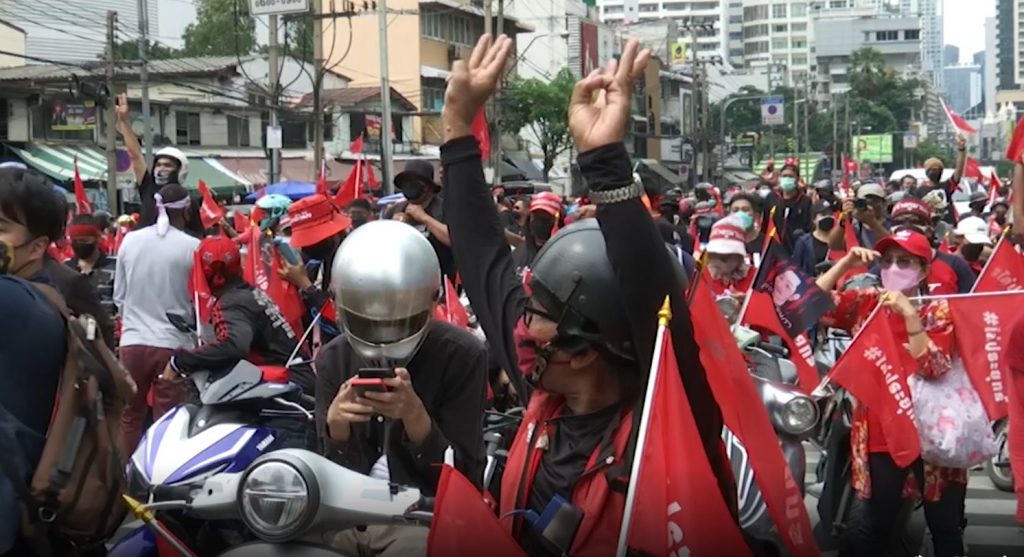 ส่วนกลุ่มต่อต้านรัฐบาลเผด็จการ และกลุ่มทะลุแก๊ส นัดหมาย 17.30 น. ที่สามเหลี่ยมดินแดง โดยมีกำลังเจ้าหน้าที่ตำรวจรักษาความสงบเรียบร้อยบริเวณแยกดินแดง ทำให้ทางกลุ่มฯ มารวมที่บริเวณอนุสาวรีย์ชัยสมรภูมิ และบางส่วนได้ชักชวนกันไปรวมตัวที่แยกนางเลิ้ง โดยมีการรวมตัวก่อความวุ่นวาย ขว้างปา ประทัด พลุไฟ ระเบิดต่างๆ ใส่เจ้าหน้าที่ บริเวณเชิงสะพานชมัยฯ เป็นระยะ มีการจุดไฟเผาป้อมการจราจรแยกนางเลิ้ง และทุบทำลายป้อมจราจรแยกยมราชเสียหาย