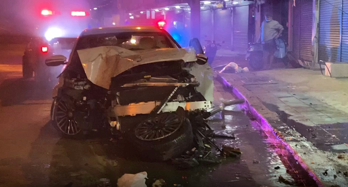 ที่เกิดเหตุเป็นถนนฝั่งขาออก ก่อนถึงแยกคลองตัน 100 เมตร พบรถเบนซ์ รุ่นซี 350 สีขาว หมายเลขทะเบียน 3กภ7722 กรุงเทพมหานคร สภาพด้านหน้าพังยับถึงเครื่องยนต์ ล้อหน้าหลุดทั้งสองข้าง ถุงลมนิรภัยทำงานทั้งสองฝั่ง มีคราบน้ำมันหยดไหลเป็นทาง เสียหายหนัก หลังพุ่งชนร้านเช่าชุดแต่งงาน จนประตูเหล็กพังและประตูกระจกแตกเสียหาย หุ่นโชว์ชุดแต่งงานกระจายอยู่ภายในร้าน คนขับรถคันดังกล่าวทราบชื่อต่อมา น.ส.ณิชมน (สงวนนามสกุล) อายุประมาณ 30 – 35 ปี พบนอนอยู่ที่ด้านนอกของตัวรถ ได้รับบาดเจ็บที่บริเวณแขนขวา และศีรษะ เจ้าหน้าที่เร่งนำตัวส่ง รพ.คามิลเลียน