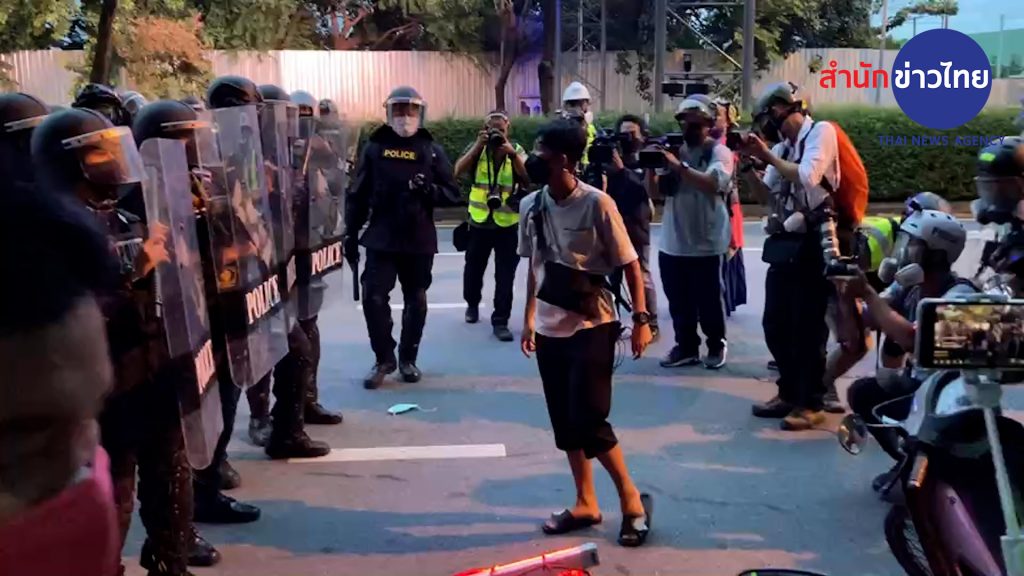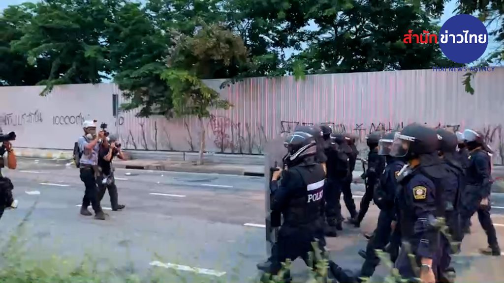 กทม. 25 ก.ย.-ตำรวจ คฝ.พยายามใช้ชุดเคลื่อนที่เร็วเข้าจับกุมผู้ชุมนุมที่ถอยร่นมาบริเวณถนนพิษณุโลก แต่ถูกต่อต้านจากชาวบ้านในชุมชน