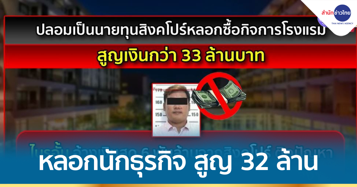 กรุงเทพฯ 30 ก.ย. – รวบชายวัย 42 ปี อ้างเป็นนายทุนสิงคโปร์ หลอกซื้อกิจการโรงแรมจากนักธุรกิจชาวไทย เหยื่อหลงเชื่อโอนเงินเกือบ 300 ครั้ง สูญกว่า 32 ล้านบาท
