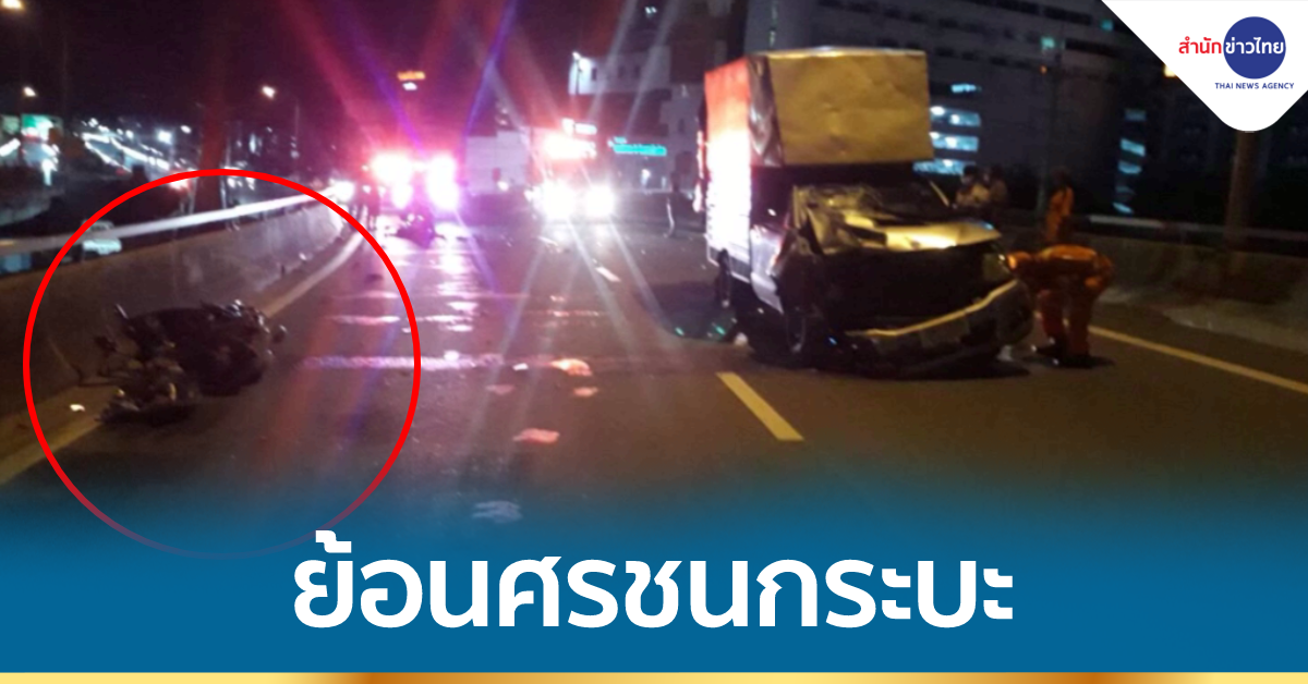 กรุงเทพฯ 10 ต.ค.- จักรยานยนต์ขี่ย้อนศรลงทางด่วน ประสานงากับกระบะขนปลาทูเสียชีวิต บริเวณทางขึ้นด่วนดาวคะนอง