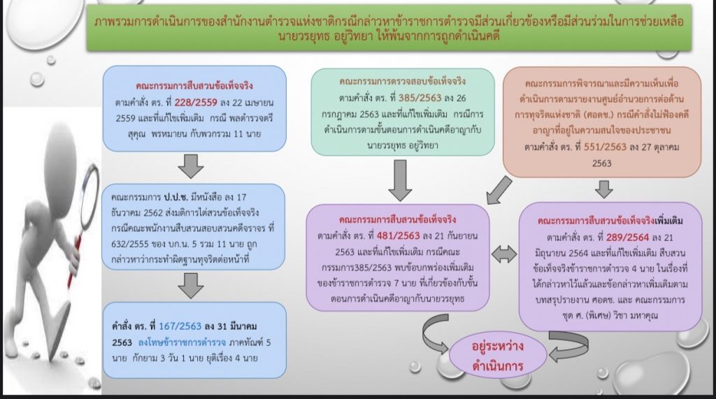 พลตำรวจตรียิ่งยศ เทพจำนงค์ โฆษกสำนักงานตำรวจแห่งชาติ พร้อมด้วย พลตำรวจโทเชษฐา โกมลวรรธนะ หัวหน้าจเรตำรวจ (หน.จต.) พลตำรวจตรีโสภณ สารพัฒน์ ผู้บังคับการตำรวจนครบาล 5 และพันตำรวจเอก ทรงเอก พัชรวิชญ์ ผู้กำกับการฝ่ายสิทธิสัญญาและกฎหมาย กองการต่างประเทศ ร่วมแถลงข่าวชี้แจงข้อเท็จจริงกรณีการติดตามตัว นายวรยุทธ อยู่วิทยา หรือ บอส ทายาทเครื่องดื่มชูกำลัง ขับรถยนต์ชนตำรวจเสียชีวิต และหลบหนีไปต่างประเทศนานหลายปี