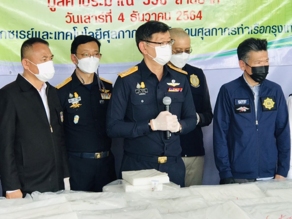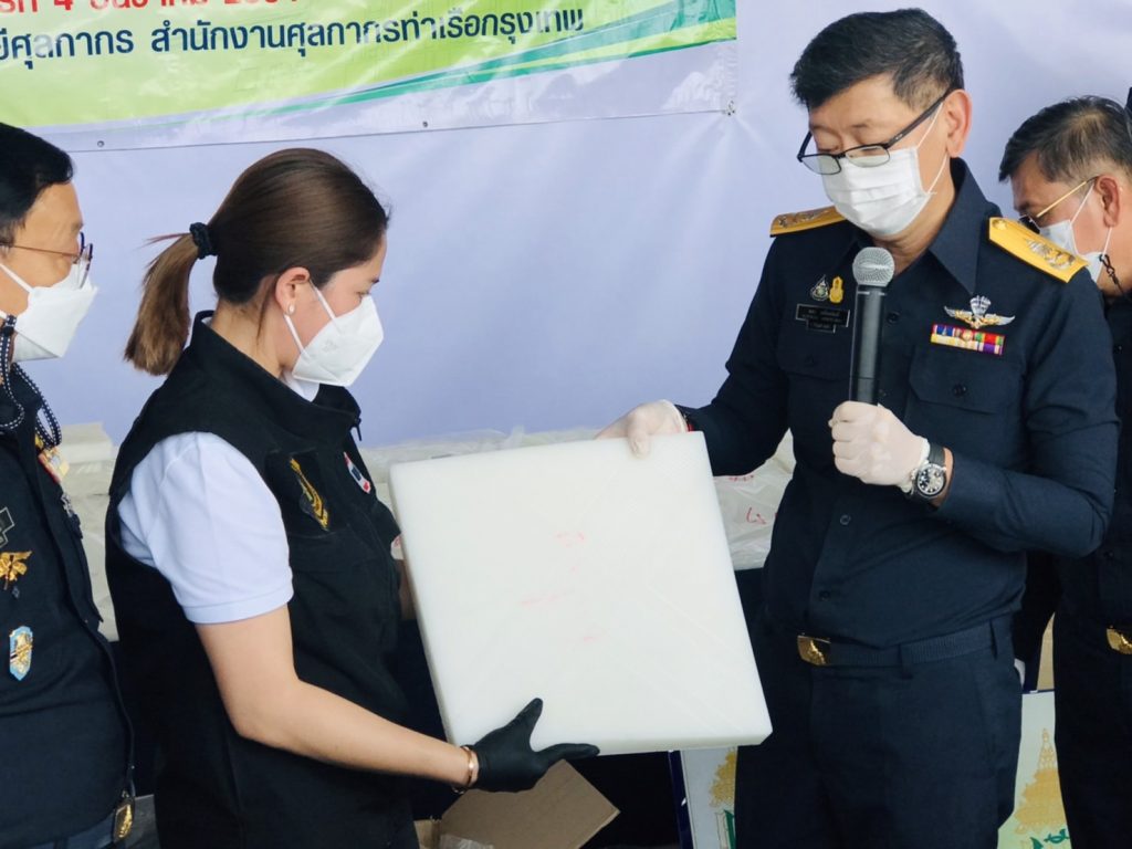 นายพชร อนันตศิลป์ อธิบดีกรมศุลกากร แถลงผลการตรวจยึดไอซ์ น้ำหนัก 897 กิโลกรัม มูลค่าประมาณ 538 ล้านบาท ขณะเตรียมส่งออกไปประเทศไต้หวัน โดยใช้วิธีซุกซ่อนอยู่ในแผ่นซิลิโคนปูพื้น บรรจุใส่กล่องเหมือนสินค้าทั่วไป