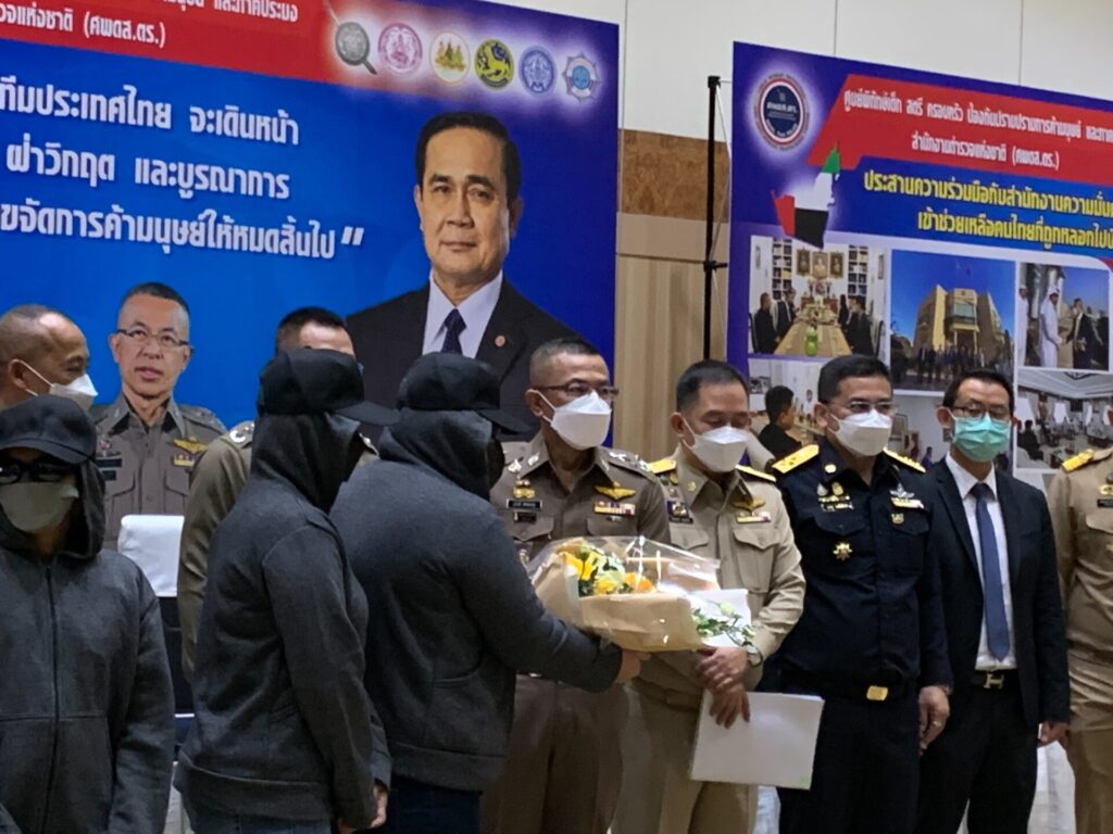 โดยเจ้าหน้าที่ศูนย์พิทักษ์เด็ก สตรี และครอบครัว ป้องกันปราบปรามการค้ามนุษย์ แลพภาคประมง สำนักงานตำรวจแห่งชาติ หรือ ศพดส.ตร. สามารถช่วยเหลือคนไทยกลับมาได้อย่างปลอดภัย รวม 364 คน แบ่งเป็นการช่วยเหลือจากประเทศกัมพูชา 361 คน และสหรัฐอาหรับ เอมิเรตส์ 3 คน พร้อมดำเนินคดีกับผู้กระทำความผิด และมีการออกหมายจับผู้ที่เกี่ยวข้องหลอกลวงคนไทยไปบังคับใช้แรงงานในกัมพูชา34 คน คงเหลืออีก 17 คน นอกจากนี้ยังออกหมายจับผู้กระทำความผิดที่เกี่ยวข้องกับการหลอกลวงคนไทยไปค้าประเวณีที่สหรัฐอาหรับเอมิเรตส์ 25 คน จับกุมแล้ว 6 คน อยู่ระหว่างการหลบหนีอีก 19 คน