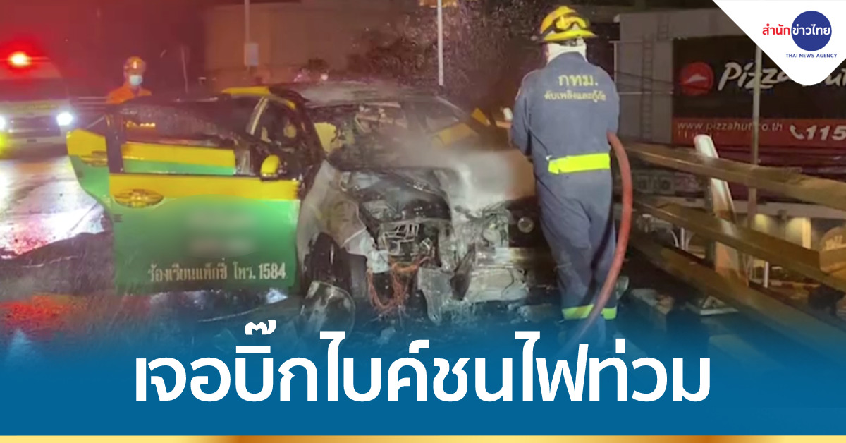 กรุงเทพฯ 26 ธ.ค.- หนุ่มนักดนตรีซิ่งรถบิ๊กไบค์ สวนเลนขึ้นสะพานข้ามแยกสามเหลี่ยมดินแดง พุ่งชนรถแท็กซี่ไฟลุกท่วม และมีผู้ได้รับบาดเจ็บสาหัส 2 คน