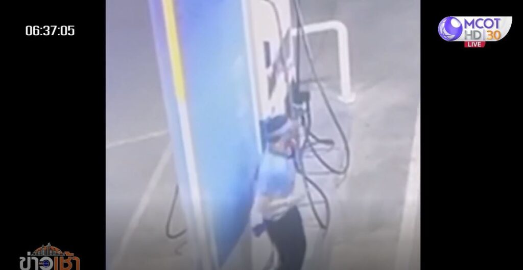 ภาพจากกล้องวงจรปิดภายในปั๊มน้ำมัน ปตท. ปากซอยสะแกงาม 14 สามารถบันทึกภาพเหตุการณ์ขณะเด็กปั๊มถูกกระสุนปืนไม่ทราบขนาดยิงเข้าบริเวณลำตัว จากเหตุการณ์นักเรียนอาชีวะ 2 ฝ่าย ไล่ยิงกัน เมื่อช่วงเวลาประมาณ 22.00 น. วานนี้ (29 ธ.ค.) ก่อนเจ้าหน้าที่ตำรวจลงพื้นที่เข้าตรวจสอบที่เกิดเหตุ