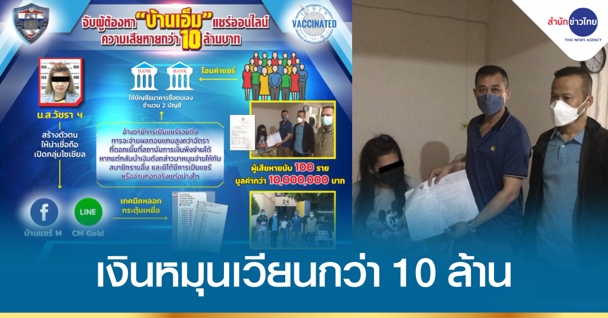 สมุทรสาคร 10 ม.ค. – ตำรวจ PCT ทลายเครือข่ายแชร์ลูกโซ่ “บ้าน M” หลอกเหยื่อเข้ามาระดมทุนเล่นแชร์ อ้างให้ผลตอบแทนสูง พบเงินหมุนเวียนกว่า 10 ล้านบาท