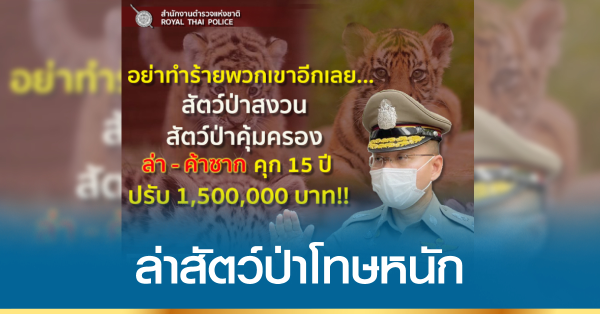 กรุงเทพฯ 14 ม.ค. – โฆษกสำนักงานตำรวจแห่งชาติ เตือนล่า-ค้าซาก “สัตว์ป่าคุ้มครอง สัตว์ป่าสงวน” คุก 15 ปี ปรับ 1.5 ล้านบาท