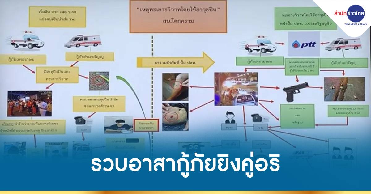 กรณีนี้เกิดขึ้นเมื่อกลางดึกของคืนวันที่ 13 ม.ค.65 เวลาประมาณ 22.40 น.ได้มีเหตุอาสาสมัครมูลนิธิร่วมกตัญญูใช้อาวุธปืนยิงขึ้นฟ้าเพื่อข่มขู่เจ้าหน้าที่กู้ภัยเพชรเกษม ที่บริเวณปากซอยงามวงศ์วาน 43 ถ.งามวงศ์วาน แขวงทุ่งสองห้อง เขตหลักสี่ กรุงเทพมหานคร พื้นที่รับผิดชอบของ สน.ทุ่งสองห้อง ต่อมาได้มีการทะเลาะวิวาทกันชกต่อยทำร้ายร่างกายซึ่งกันและกัน ระหว่างเจ้าหน้าที่ร่วมกตัญญูและเจ้าหน้าที่มูลนิธิเพชรเกษมที่บริเวณแยกพงษ์เพชร ถนนงามวงศ์วานฯ เจ้าหน้าที่ตำรวจสายตรวจ สน.ทุ่งสองห้อง ได้เข้าระงับเหตุแยกคู่กรณีทั้งสองฝ่ายจนเหตุการณ์สงบ คู่กรณีทั้งสองฝ่ายได้เข้าแจ้งความร้องทุกข์ต่อพนักงานสอบสวน สน.ทุ่งสองห้อง เพื่อดำเนินคดีต่อกัน