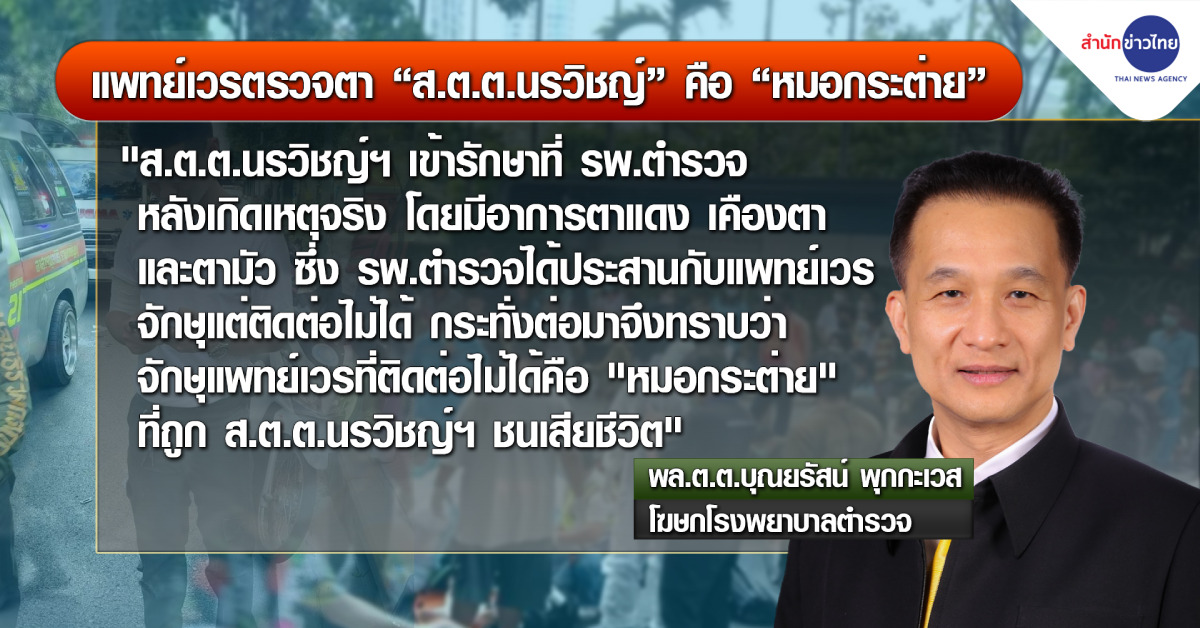กรุงเทพฯ 25 ม.ค.-โฆษก รพ.ตร. แจง “หมอกระต่าย” คือแพทย์เวร ในวันที่ “ส.ต.ต.นรวิชญ์” เข้ามารักษาตา หลังขี่บิ๊กไบค์ ชน “หมอกระต่าย”
