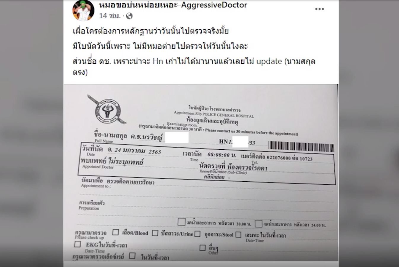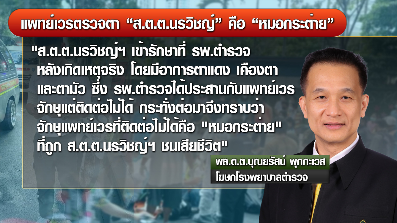 การกล่าวอ้างนี้ มีคำยืนยืนในภายหลังจากพลตำรวจตรีบุญยรัสน์ พุกกะเวส โฆษกโรงพยาบาลตำรวจว่าในวันดังกล่าว (วันที่เกิดอุบัติเหตุ) สิบตำรวจตรี นรวิชญ์ เข้ามาหาหมอตาที่โรงพยาบาลตำรวจจริง พร้อมย้ำว่าวันนั้นหมอตาที่ตรวจสิบตำรวจตรี นรวิชญ์ไม่ใช่หมอกระต่าย และหมอกระต่ายไม่ได้เป็นเจ้าของไข้แน่นอน เพราะสิบตำรวจตรีนรวิชญ์มาพบแพทย์หลังเกิดอุบัติเหตุ ซึ่งประเด็นนี้สังคมยังเคลือบแคลงมาหาหมอตา เพื่อผลประโยชน์อื่นใดหรือไม่