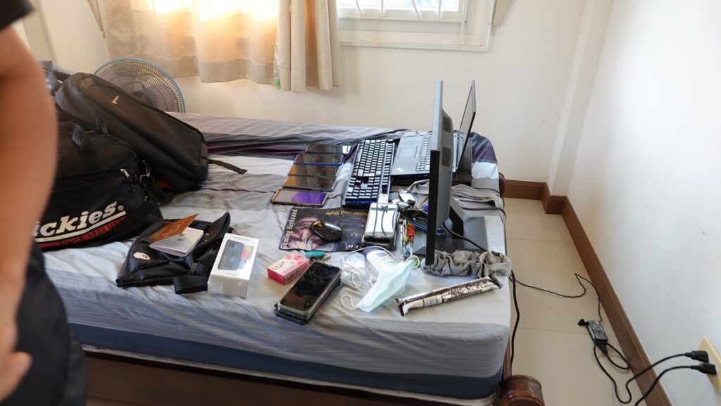 ตามนโยบายของ พล.ต.อ.สุวัฒน์ แจ้งยอดสุข ผบ.ตร. ที่มุ่งเน้นในการรับมืออาชญากรรมในรูปแบบต่าง ๆ ในโลกออนไลน์ จึงได้สั่งการให้ พล.ต.อ.ดำรงศักดิ์ กิตติประภัสร์ รอง ผบ.ตร./ผอ.ศปอส.ตร (PCT) , พล.ต.ท.ปรีชา เจริญสหายานนท์ ผู้ช่วย ผบ.ตร. พล.ต.ท.กิตติ์รัฐ พันธุ์เพ็ชร์ ผู้ช่วย ผบ.ตร. รอง ผอ.ศอปส.ตร. พล.ต.ท.ธิติ แสงสว่าง ผบช.ภ.2 , พล.ต.ต.ธีรเดช ธรรมสุธีร์ ผบก.สส.ภ.2/หน.ชุดปฏิบัติการ PCT ชุดที่ 5 , พ.ต.อ.สหัส ใจเย็น รอง ผบก.สส.บช.ภ.2 , พ.ต.อ.วรพจน์ รุ่งกระจ่าง ผกก.(สอบสวน) บก.สส.ภ.2 , พ.ต.อ.มาโนต หวังสู้ศึก ผกก.กก.1 บก.สส.ภ.2 , พ.ต.ท.นรามินธร์ เทพจักรินทร์ รอง ผกก.กก.1 บก.สส.ภ.2 , พ.ต.ต.ชัยวัฒน์ จงเจริญ สว.(สอบสวน) สน.บางกอกใหญ่ , พ.ต.ท.คณิตนนท์ ถนอมศรี สว.กก.1 บก.สส.ภ.2 , พ.ต.ต.สุริยะ น้อยภักดี สว.(สอบสวน) สน.เตาปูน , ร.ต.อ.ธัญพีรสิษฐ์ จุลพิภพ รอง สว.กลุ่มงานการข่าว บก.ขส.บช.ปส. , ร.ต.อ.ภัสส์กร เฉลียวบุญ รอง สว.สส.สภ.บางปะกง , ร.ต.ท.วุฒิพงศ์ กองแก้ว รอง สว.ฝอ.ภ.จว.ปทุมธานี ร่วมกันสืบสวนและเข้าตรวจค้นบ้านพัก