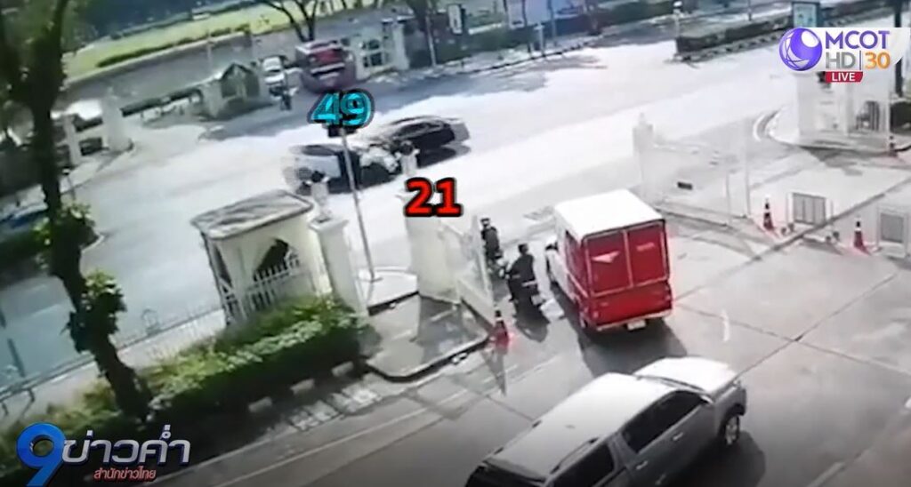ภาพจากกล้องวงจรปิดแสดงให้เห็นถึงรถเบนซ์สีดำขับมาจากแยกสามย่านด้วยความเร็วสูง พุ่งชนรถยนต์ฮอนด้าสีขาวที่กำลังเลี้ยวขวาเข้าสำนักอธิการบดี จุฬาลงกรณ์มหาวิทยาลัย ทำให้รถพลิกคว่ำทั้ง 2 คัน