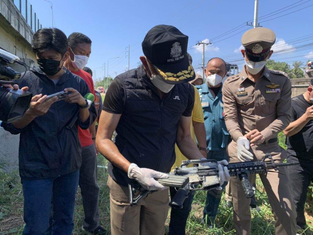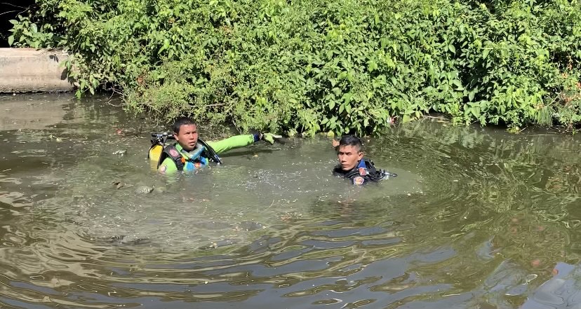 ขณะที่ พล.ต.ต.มานพ สุคนธ์ธนพัฒน์ ผู้บังคับการตำรวจนครบาล 8 นำกำลังเจ้าหน้าที่ชุดสืบสวน ประสานมูลนิธิป่อเต็กตึ๊ง นำชุดประดาน้ำมางมค้นหา อาวุธปืนสงครามที่ผู้ต้องหานำมาโยนทิ้งน้ำในคลองรางแม่น้ำ บางมด และคลองบางระนก ถนนเลียบทางด่วน กาญจนาภิเษก พื้นที่รอยต่อทุ่งครุ โดยเป็นการโยนจากด้านบนถนน ตามคำบอกเล่าของผู้ต้องหา และจากการตรวจสอบกล้องวงจรปิด พบภาพผู้ต้องหามีลักษณะเสียหลักอยู่บนสะพานข้ามคลองบางระนก เบื้องต้นพบปืนสงครามแล้ว อยู่ในคลองบางระนก โดยห่ออยู่ในถุงพลาสติกสีดำ จึงนำส่งไปตรวจพิสูจน์ที่กองพิสูจน์หลักฐาน เพื่อพิสูจน์ทราบยี่ห้อ และประเภทของปืนว่าเป็นชนิดใด