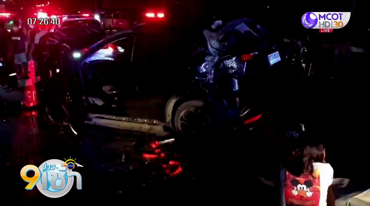 กรุงเทพฯ 7 ก.พ. – เกิดอุบัติเหตุขึ้น 2 จุด เมื่อช่วงเช้ามืดวันนี้ โดยที่ย่านเทียนทะเล รถเก๋งเสียหลักขณะขึ้นสะพาน ชนเข้ากับรถจักรยานยนต์ของ 2 สาวที่กำลังขี่รถกลับบ้าน ทำให้มีผู้เสียชีวิตทันที 2 ศพ