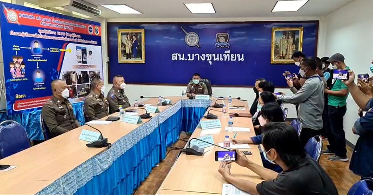 พล.ต.ท.สุรเชษฐ์ หักพาล ผู้ช่วย ผบ.ตร. ในฐานะรอง ผอ. ศูนย์พิทักษ์เด็ก สตรี ครอบครัว ป้องกันปราบปรามการค้ามนุษย์และภาคประมง สำนักงานตำรวจแห่งชาติ แถลงผลจับกุม 2 ผู้ต้องหาตัดต่อภาพผู้เสียหายใส่รูปลามกโพสต์ลงทวิตเตอร์ โดยมีผู้เสียหายจำนวนมาก