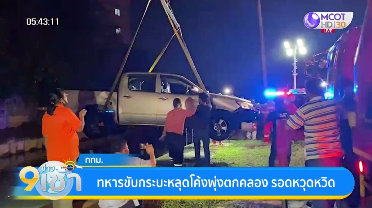 กรุงเทพฯ 11 ก.พ. – ทหารวัย 52 ปี ขับกระบะหลุดโค้งพุ่งตกคลองบางบัว จมหายทั้งคัน ชาวบ้านเข้าช่วยเหลือรอดตายหวุดหวิด