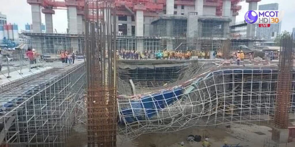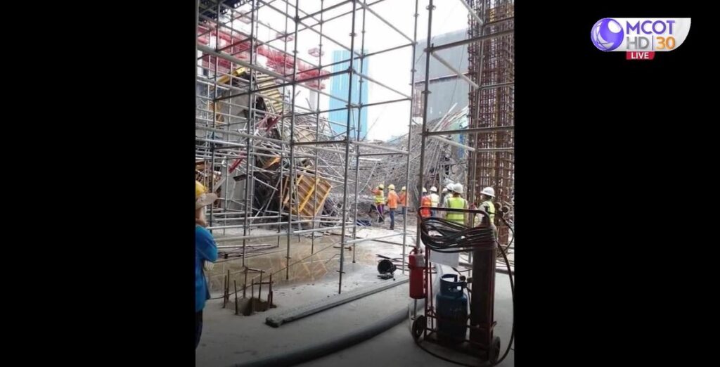 กรุงเทพฯ 16 ก.พ. – โครงสร้างค้ำยันรองรับแบบหล่อคอนกรีต โรงแรมหรูย่านลุมพินี พังถล่มขณะเทคอนกรีต ทำให้คนงานก่อสร้างเสียชีวิต 2 คน