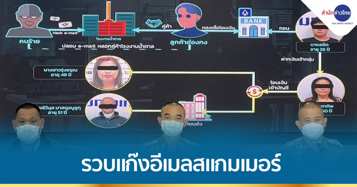 กองปราบฯ 18 ก.พ.-ตำรวจ ปอท.รวบแก๊งอีเมลสแกมเมอร์ ปลอมอีเมลโรงงานน้ำตาลฮ่องกง ลูกค้าคนไทยหลงเชื่อโอนเงินโดยไม่สงสัย พบมูลค่าความเสียหาย 6 ล้านบาท