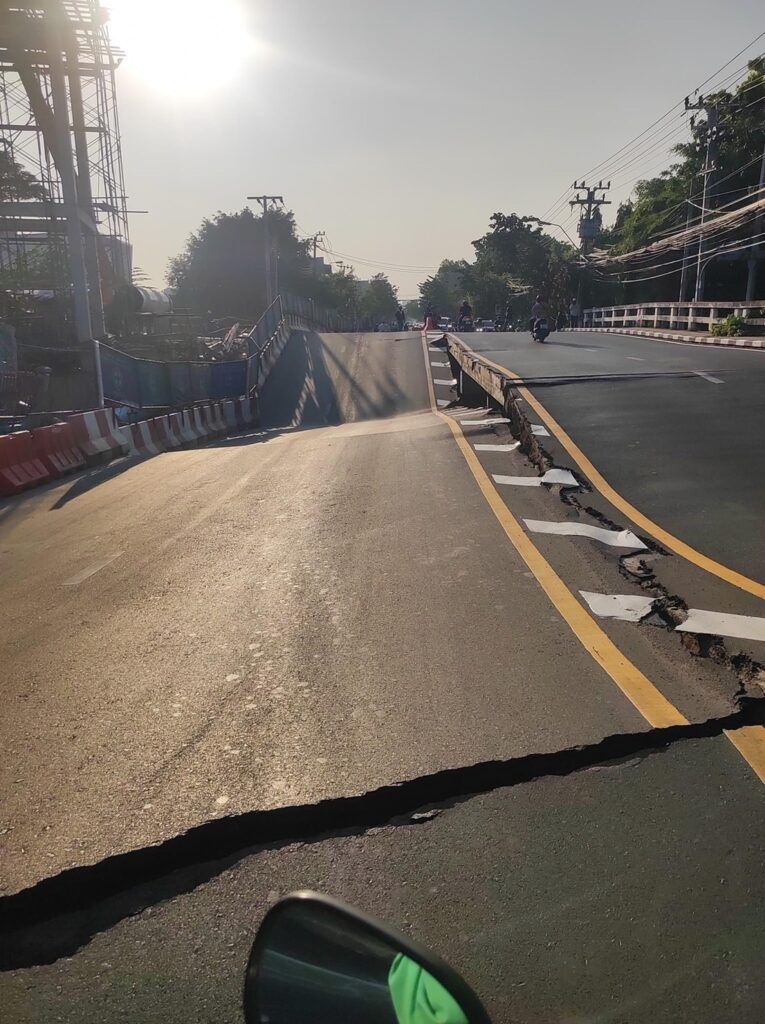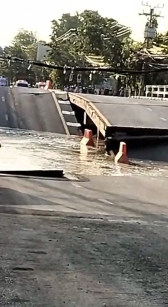 กรุงเทพฯ 26 ก.พ.-สะพานข้ามคลองเคล็ด ถนนอุดมสุข ยุบตัว ส่งผลบ้านข้างสะพาน 5-7 หลัง ทรุดตัวทันที เจ้าหน้าที่เร่งอพยพชาวบ้าน พบเพิ่งปิดปรับปรุงสะพาน และเปิดใช้งานเมื่อต้นเดือน ก.พ.