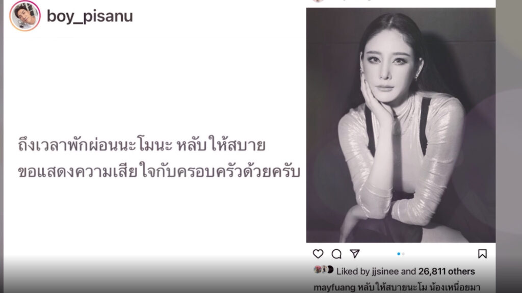 นอกจากนี้ อั้ม พัชราภา โพสต์ภาพคู่ในอดีต พร้อมเขียนข้อความอาลัยว่า ช่วงวันเกิดพี่ น้องบอกพี่นุ๊กว่าอยากมาเซอร์ไพรส์วันเกิดพี่ ช่วงปลายเดือนธันวาคมน้องบอกพี่เอว่าอยากมาเจอพี่อั้ม ยังไม่ทันที่เราจะได้นัดเจอกันเลย หลับให้สบายนะคะคนสวยของพี่ พี่ๆทุกคนจะคิดถึงน้องตลอดไปนะคะ
