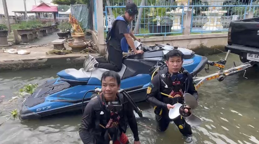 เมื่อเวลา 10.30 -11.00 น. วันที่ 3 มี.ค. ที่อู่ต่อเรือ NBC BOAT CLUB ได้มีทีมเจ้าหน้าที่อาสากู้ภัยทีมนักประดาน้ำ มูลนิธิร่วมกตัญญู นทีส่วนกลาง ลงพื้นที่ดำนำเก็บกู้ใบพัดเรือของกลางที่จมหายลงสู่ก้นแม่น้ำเจ้าพระยาขณะจำลองเหตุการณ์เมื่อคืนวานนี้ หลังได้รับการประสานจากทาง สภ.เมืองนนทบุรี ให้เข้ามาช่วยทำการค้นหาเก็บกู้ เพราะถือเป็นหลักฐานอย่างหนึ่งเกี่ยวกับคดีการพลัดตกเรือจมน้ำเสียชีวิตอย่างปริศนาของ “แตงโม” ภัทรธิดา พัชรวีระพงษ์ อายุ 38 ปี นักแสดงชื่อดัง