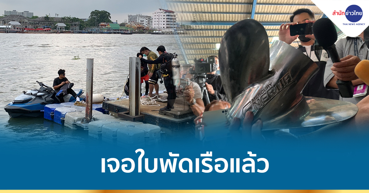 นายธนกฤต วงศ์สุวรรณ เจ้าอู่ต่อเรือ NBC BOAT CLUB เปิดเผยว่า จากการปะเมินใบพัดที่สูญหายไปในน้ำ ห่างจากโป๊ะประมาณ 8 เมตร ลึกไม่เกิน 10 เมตร เชื่อว่าหาเจอแน่นอน เพราะใบพัดมีน้ำหนัก 10 กิโลกรัม เป็นการจมในลักษณะดิ่ง ไม่ถูกกระแสน้ำพัดไปไกลกว่านี้ แต่ทั้งนี้หากหาไม่เจอ ช่วงบ่ายจะมีการประสานบริษัทเอกชนที่มีเครื่องตรวจจับโลหะ เข้ามาช่วยค้นหาอีกครั้ง นอกจากนี้จากการพูดคุยกับตำรวจเชื่อว่าไม่กระทบรูปคดี เพราะส่งตรวจเก็บไว้เรียบร้อยแล้ว ส่วนสาเหตุที่ใบพัดหลุดเป็นการใส่บูทกลับด้าน ตัวบูทจะทำหน้าที่ลดแรงสั่นสะเทือน ระหว่างใบพัดกับแกนเหล็กเสียบใบพัด อย่างไรก็ตามหลังการค้นหาประมาณ 15 นาที เจ้าหน้าที่นักประดาน้ำก็สามารถทำการเก็บกู้ใบพัดเรือขึ้นมาได้สำเร็จ จากนั้นมีการส่งมอบใบพัดเรือให้กับทางเจ้าหน้าที่ตำรวจ สภ.เมืองนนทบุรี .-สำนักข่าวไทย